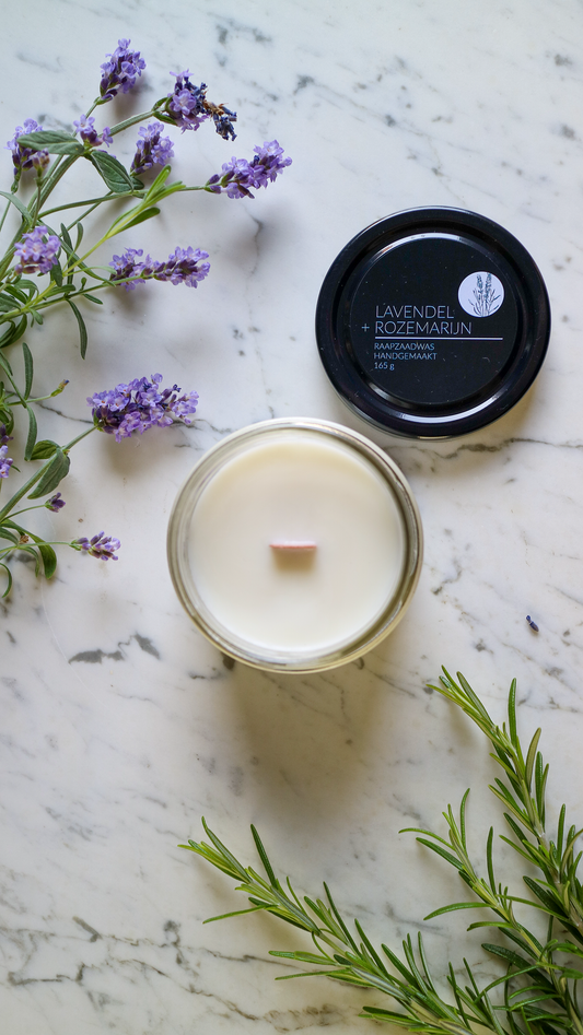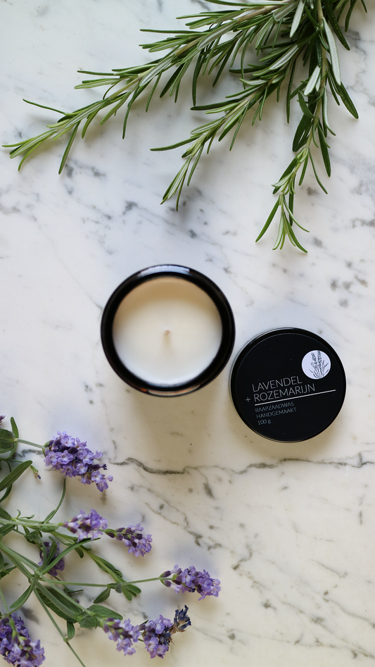 Geurkaars Lavendel + Rozemarijn Katoenen Lont