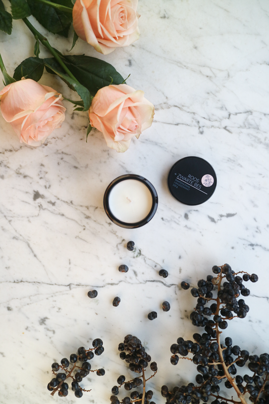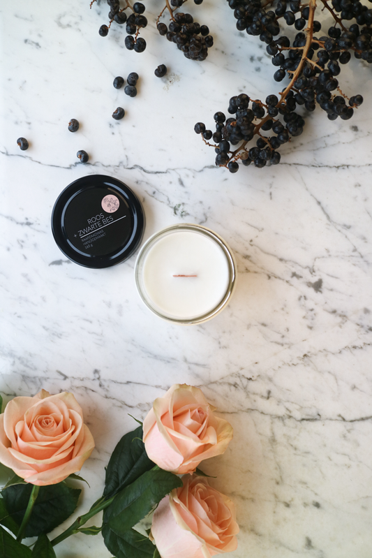 Geurkaars Roos + Zwarte Bes Katoenen Lont