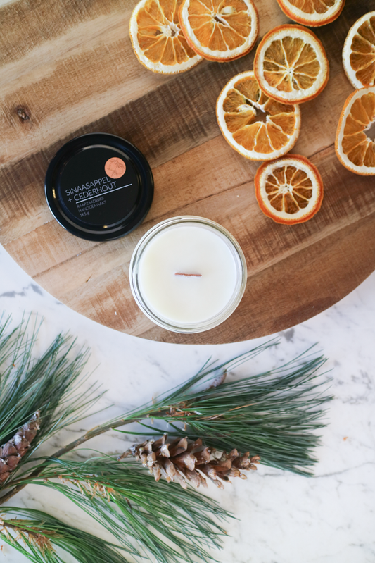 Geurkaars Sinaasappel + Cederhout Katoenen Lont