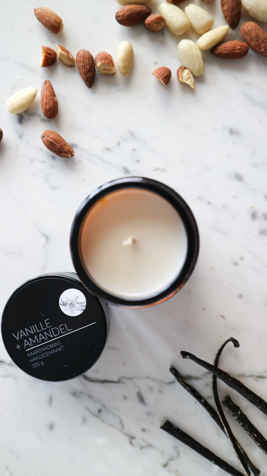 Geurkaars Vanille + Amandel Katoenen Lont